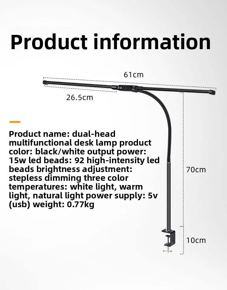 Adjustable Arm: Flexible gooseneck design offers multiple angles for versatile task lighting.