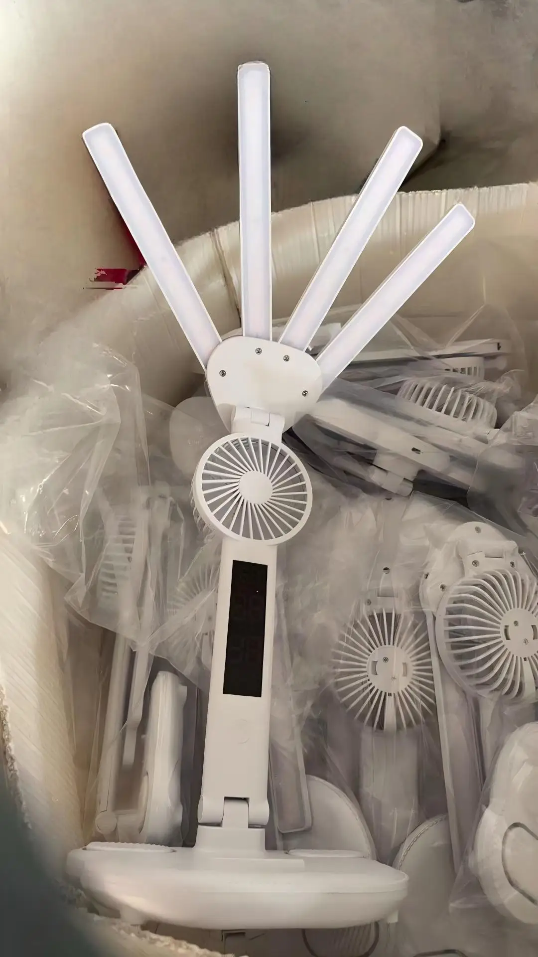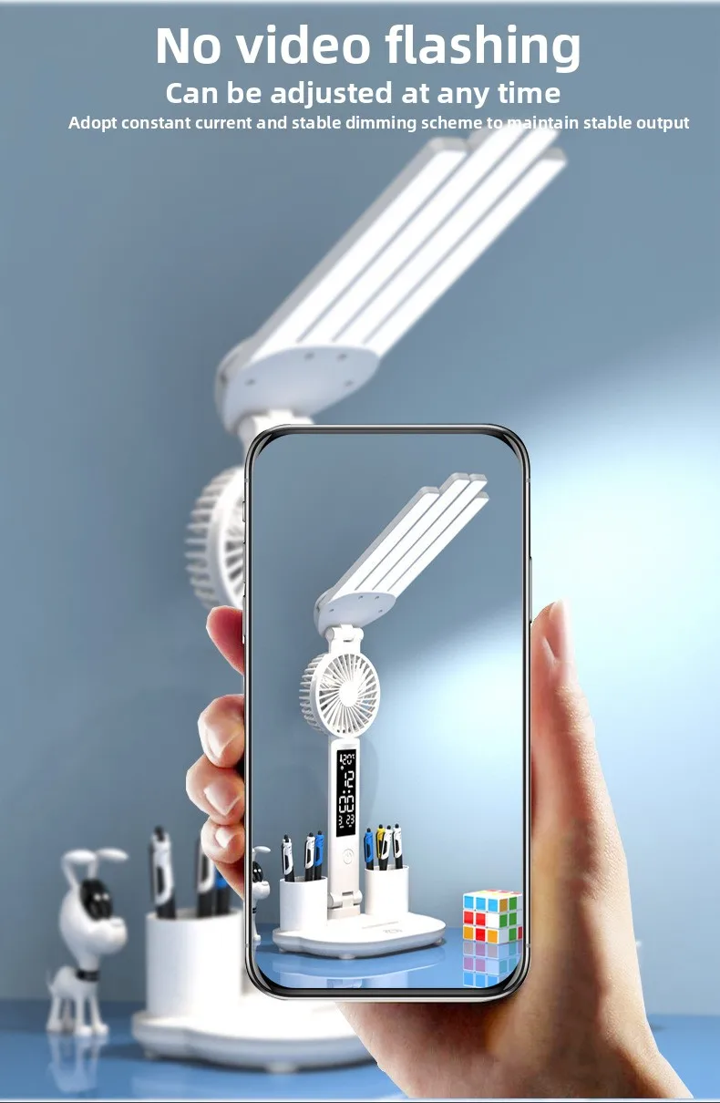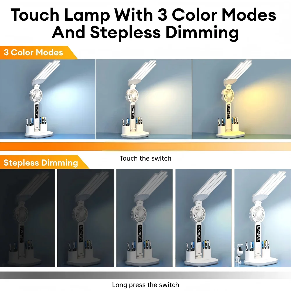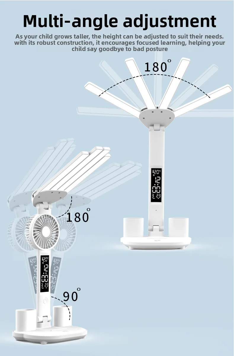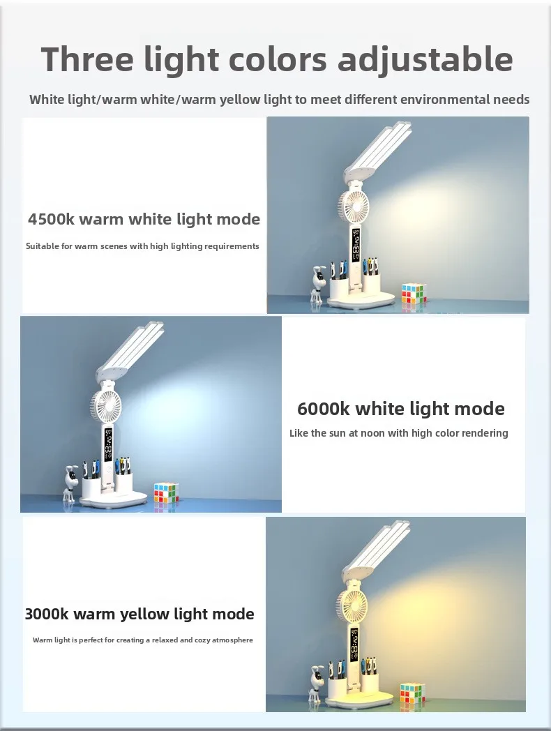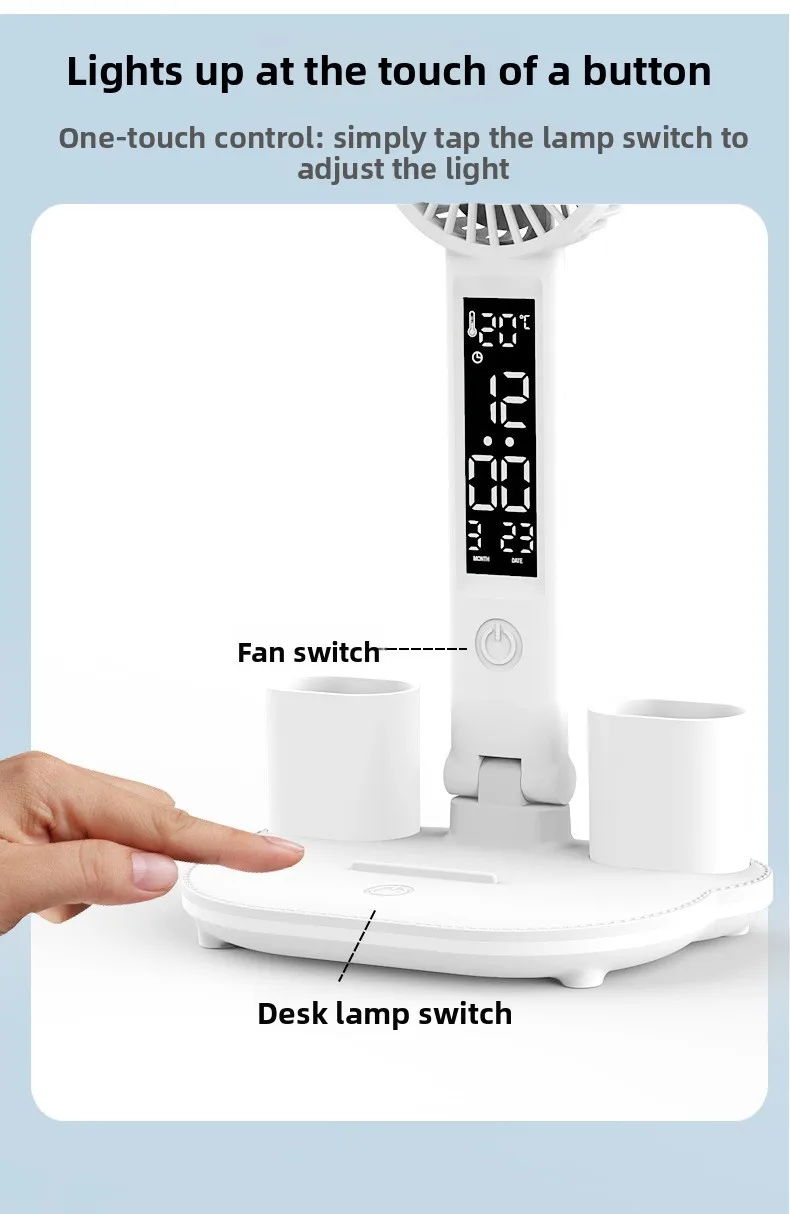 Multi-Function Design: Combines LED lighting, fan, clock, and temperature display for versatile use.