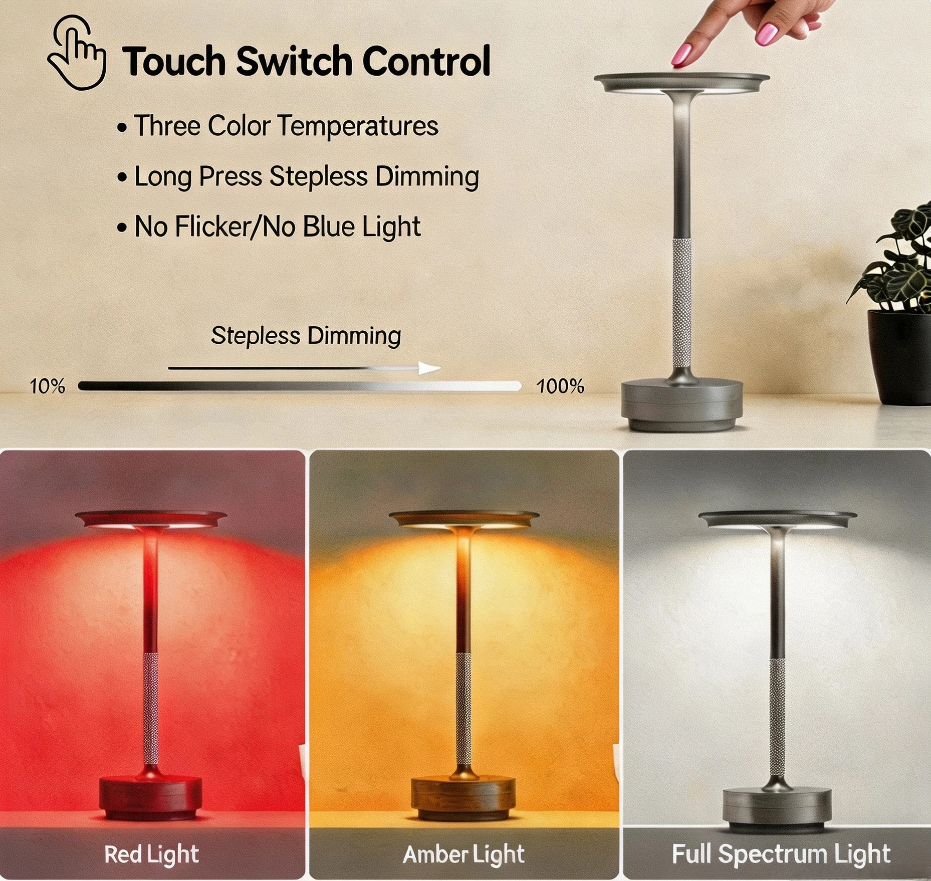 Adjustable Color Temperature: Offers warm and cool light options.